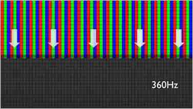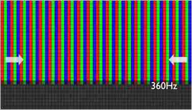 传统液晶驱动是从左到右单向进行,,,,在画面更新速度愈来越愈快的情况下,,,位于驱动线路末端的右下角区域,,,画素的闸极来不及在短时间内获得足够电压,,,,无法显示出正确的颜色资讯。。。。 |