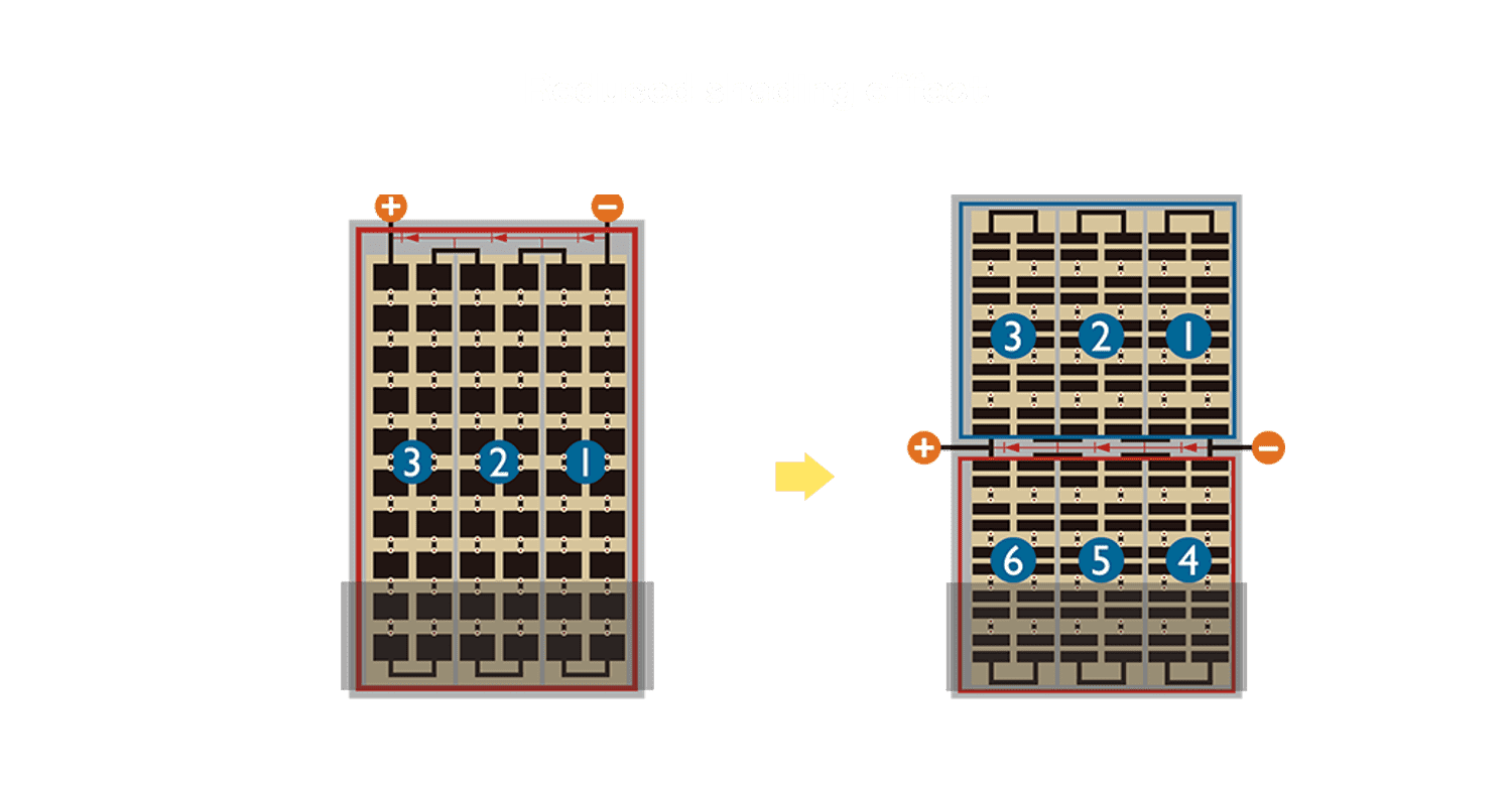 优化的太阳能电池结构设计,,,,不仅提高电流收集效率,,,,降低电池隐裂,,使太阳能模组长期维持稳定的输出效能,,,,提高营运效益。。。。
